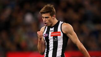 The 22-year-old’s campaign started in the green substitute’s vest in the NAB Cup against the Eagles but he caught the eye with 13 disposals and three clearances when he was released into the action. Another solid showing against the Lions meant that he was rewarded with a senior debut against North Melbourne in round one. He contributed 18 disposals and seven clearances to Collingwood’s 16-point win but was squeezed out of the side and played in only one of his side’s next four games. In that time he got his hands dirty at VFL level, never winning less than 24 possessions and peaking with 40 touches, nine clearances and four behinds against Bendigo. He was rewarded with a three-week patch in the seniors marked by his 28 possessions in the loss to Fremantle but again slipped back to the state league.